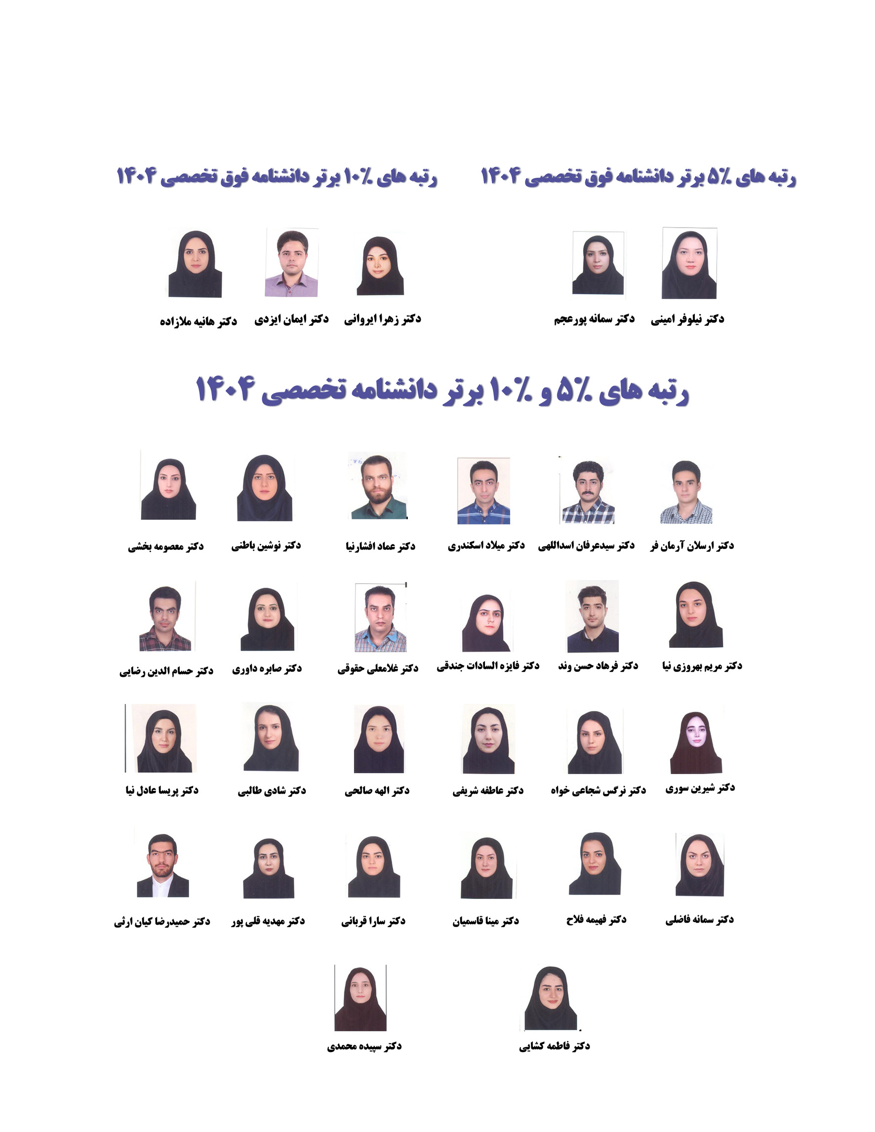 رتبه های 5% برتر دانشنامه فوق تخصصی 1404 |