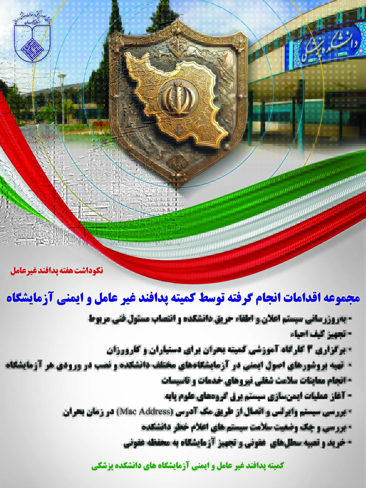 مجموعه اقدامات انجام گرفته توسط کمیته پدافند غیرعامل و ایمنی آزمایشگاه