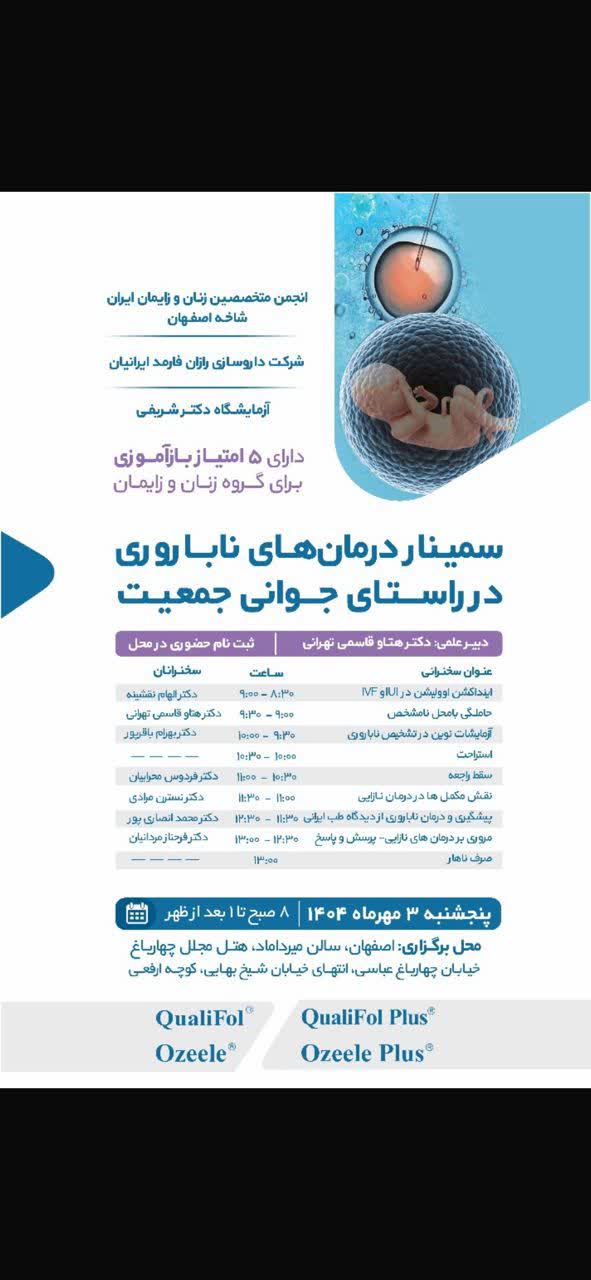 ژورنال کلاپ زنان و مامایی با موضوع اندیکاسیون لاپاروسکوپی تشخیصی در درمان ناباروری تحت راهنمایی استاد خانم دکتر روح الامین و دستیار خانم دکتر کمانگر در تاریخ دوشنبه 10 آذر ساعت 9 صبح در بیمارستان بهشتی برگزار می گردد .